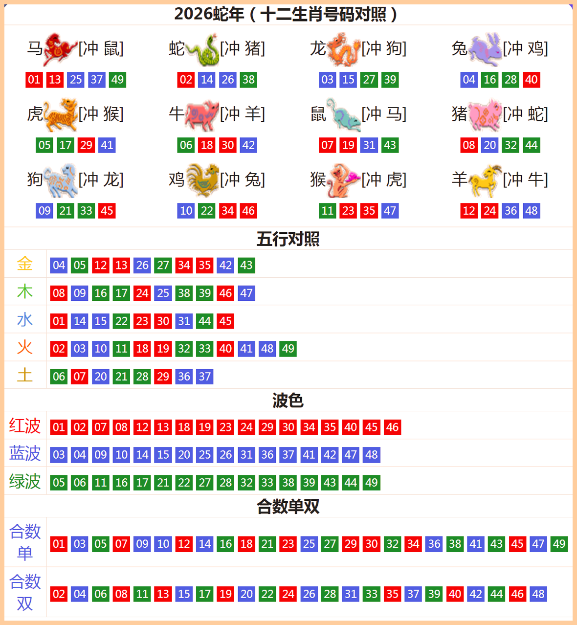 黑中:兔、龙、蛇、马、羊、猴